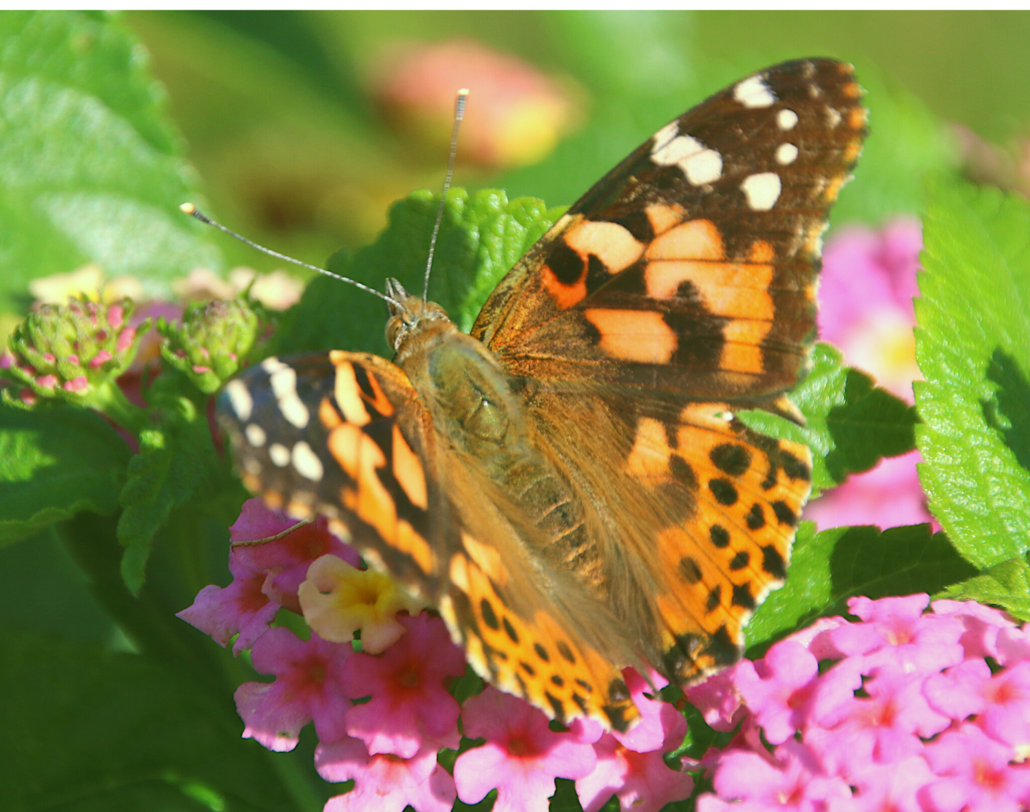 The Painted Lady has a wingspan of approximately 2 - 3 inches. Its wings are orange, brown, and white. It is a wonderful friendly butterfly to release!